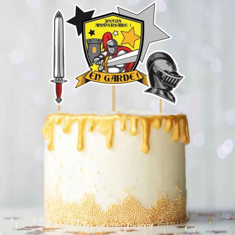 C’est possible grâce à nos cake toppers « Joyeux anniversaire » thème chevaliers !