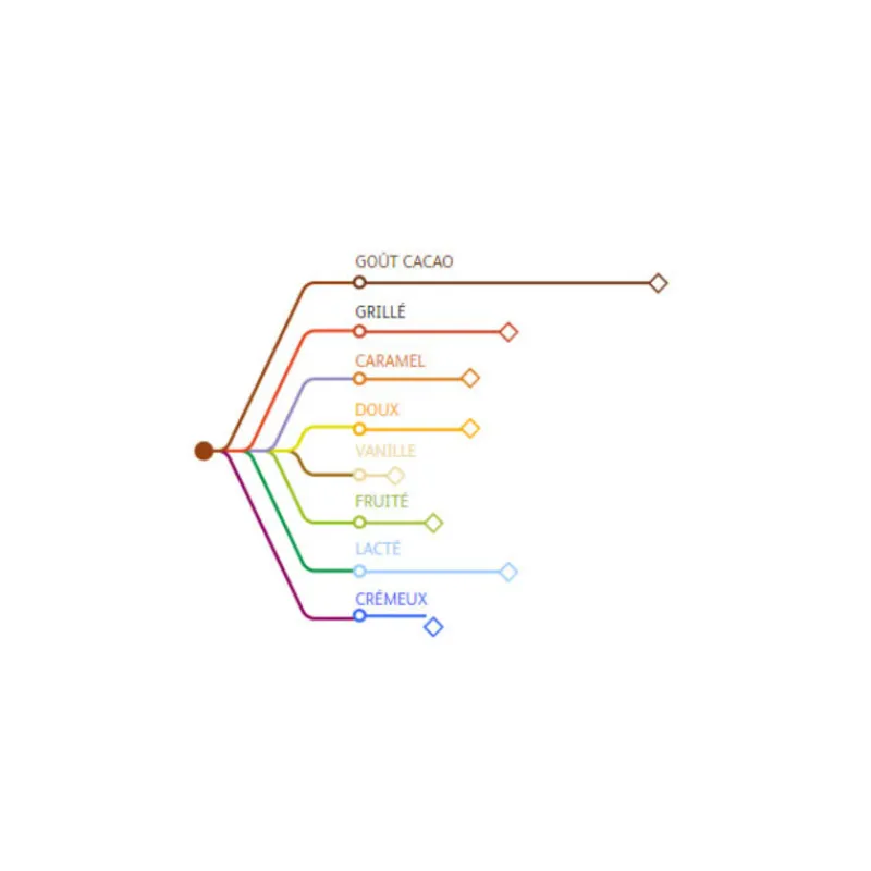 Accords : Fleur de Sel Mangue Fruit de la Passion Framboise Whisky Miel Caramel Noisettes café instantané Nescafé Espresso