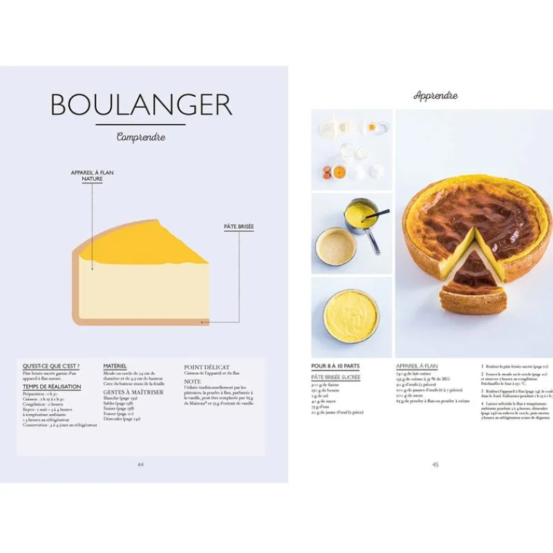 Pâte brisée – pâte feuilletée rapide – foncer un cercle – appareil à flan – praliné – flan boulanger – flan tatin – flan chocolat – flan cheesecake aux fraises – flan marron & cassis – flan praliné & cacahuète – flan pécan & érable