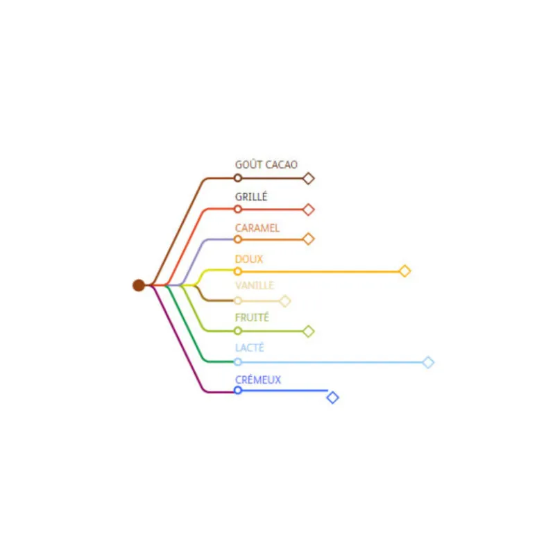 Origine : Fèves de cacao de Madagascar et d’Afrique de l’Ouest, des variété Trinitario et Forastero.