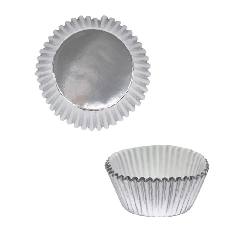 Ces caissettes à cupcakes argentées sont fabriquées en papier supportant la cuisson, doublé d’une feuille métallique pour s’assurer qu’il n’y a pas de traces de graisse.