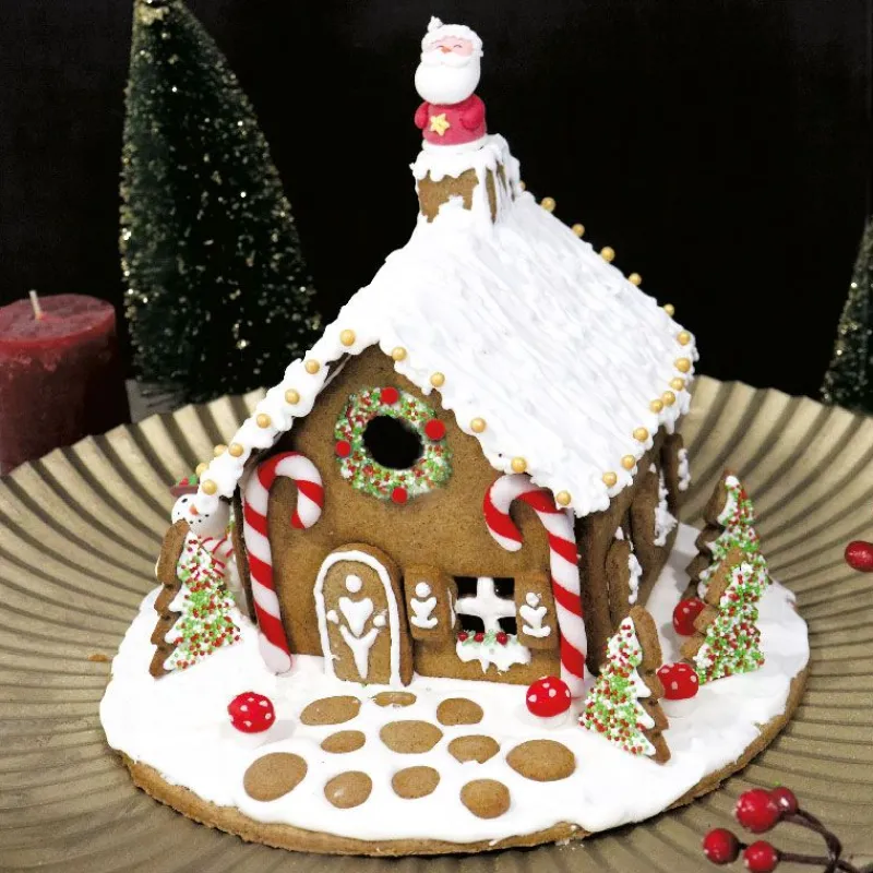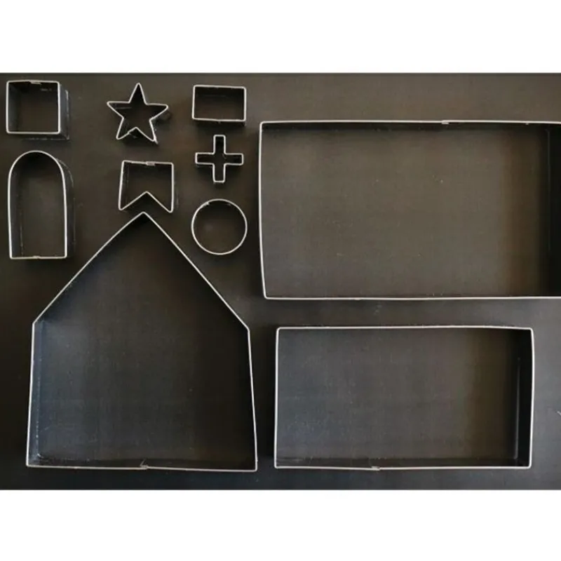 Ce kit maison pain d’épices contient 10 emporte-pièces en inox pour confectionner une maison en pain d’épices :