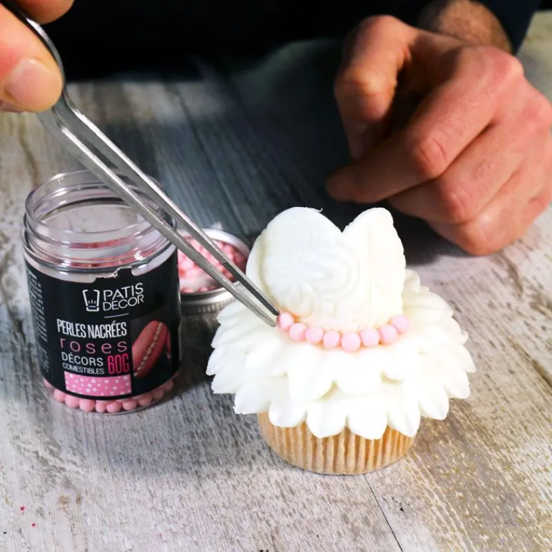 La pince à dresser est notamment utilisée pour disposer les feuilles d’or alimentaire et les feuilles d’argent alimentaire sur les pâtisseries.