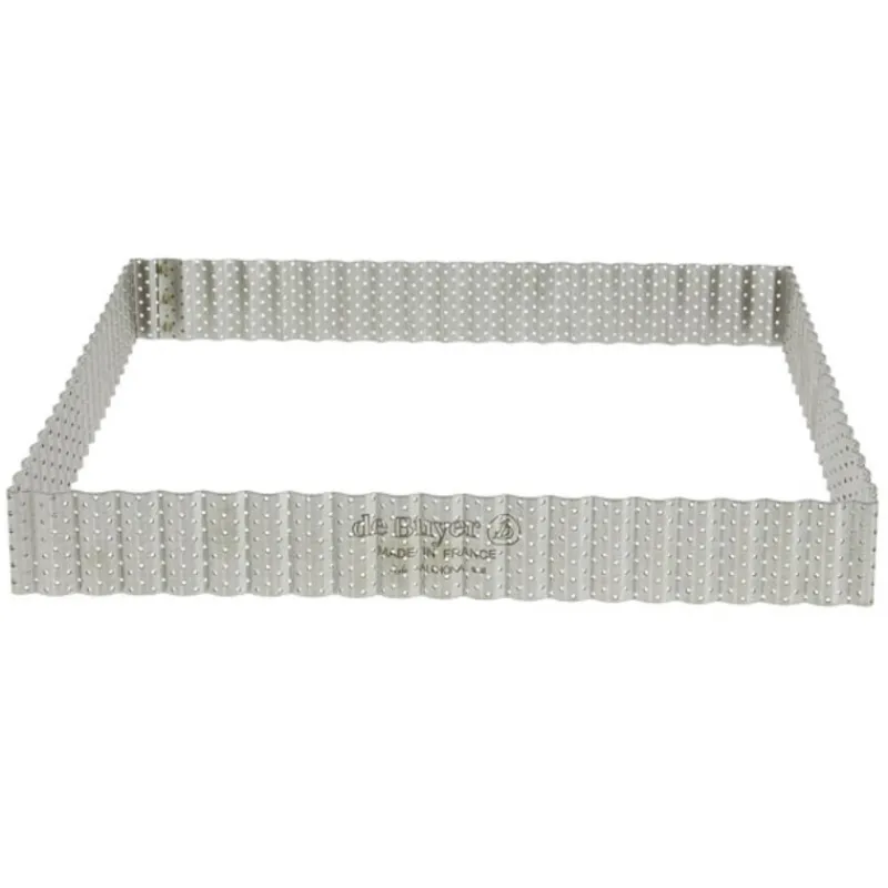 Ce cercle à tarte carré perforé et cannelé de Buyer est fabriqué en acier inoxydable. Il possède une hauteur de 3 cm, ce qui permet de réaliser des créations généreuses, élégantes et pleines de rondeurs.