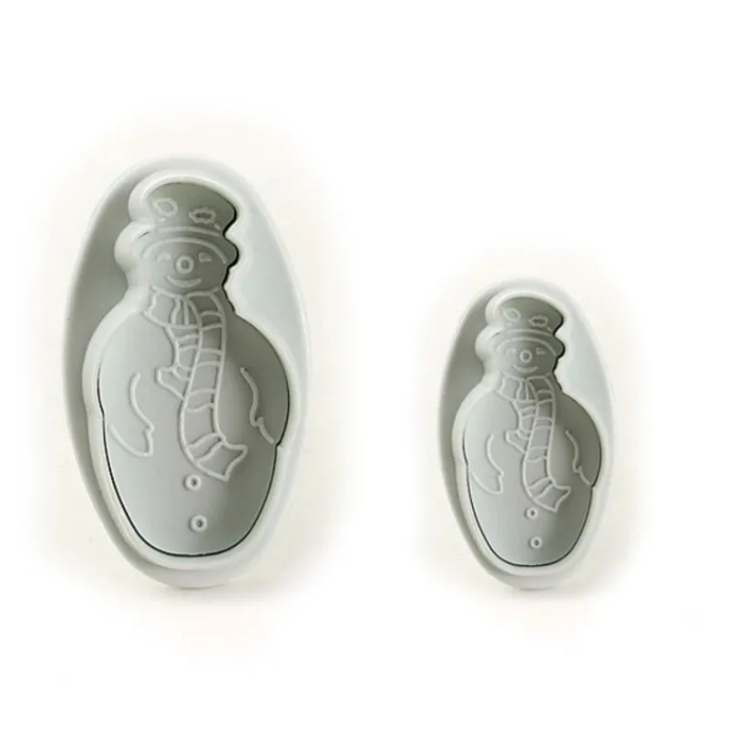 Jeu de 2 découpoirs éjecteurs « bonhomme de neige » spécial fondant, pâte à sucre et pâte d’amandes.