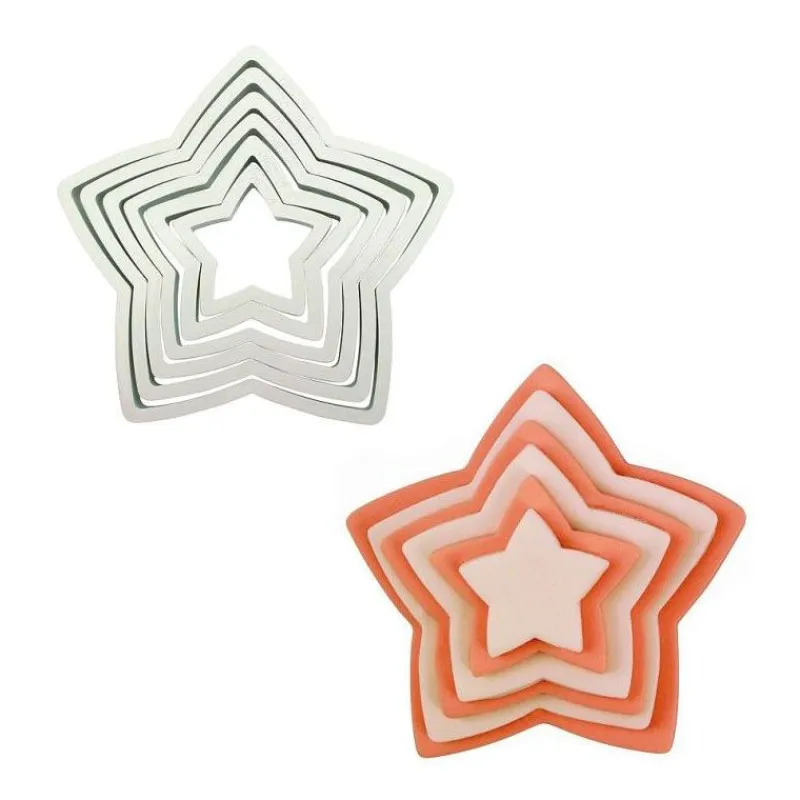 Série de 6 découpoirs étoiles lisses en plastique dur, solide et résistant.