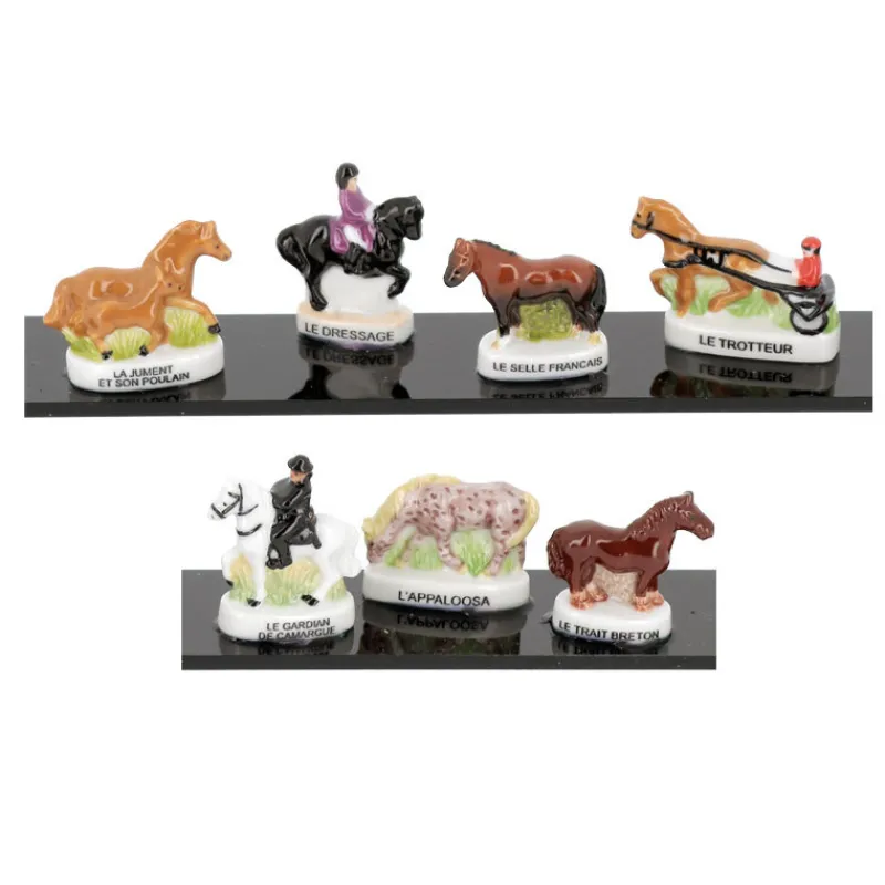 Faites plaisir aux amateurs d’équitation en leur offrant cette sélection de fèves Le monde du cheval : jument avec son poulain, trotteur…