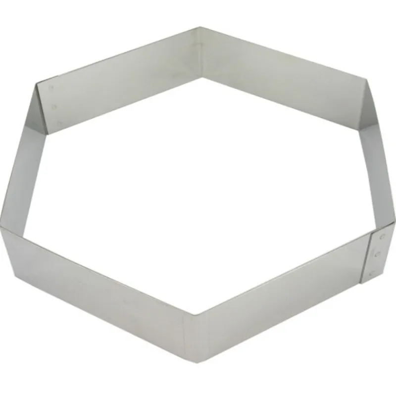 Hexagone à mousse inox hauteur 4,5 cm pour réaliser des desserts tels que tartes, mousses, entremets…