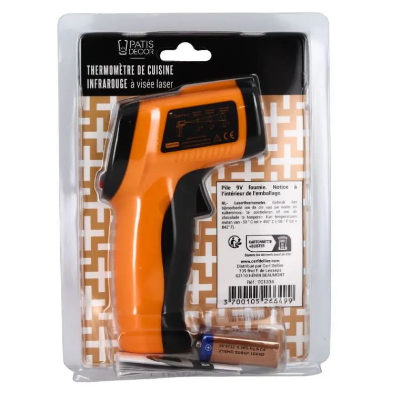 En effet, le thermomètre infrarouge ne prend pas la température au cœur des aliments ou des préparations comme le fait un thermomètre à sonde, mais simplement en surface et à distance.