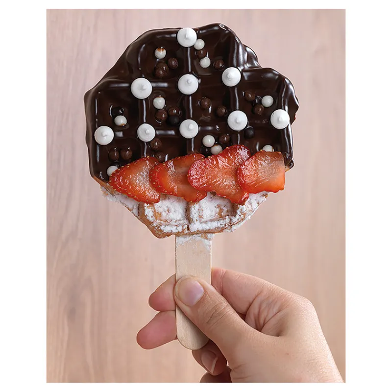 Comprend des encoches et butées pour les bâtonnets : vous pourrez ainsi préparer des gaufres sucettes sans difficulté