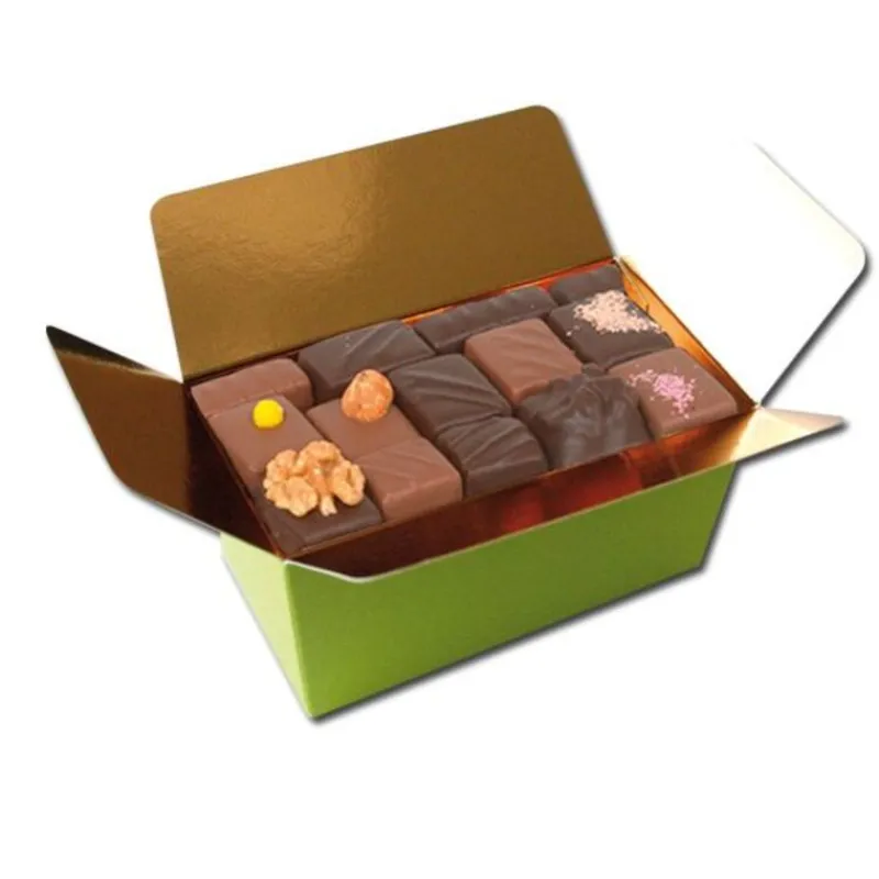 Ballotin extérieur vert intérieur blanc en carton ingraissable pour l’emballage de vos chocolats, bonbons, fruits déguisés, etc.