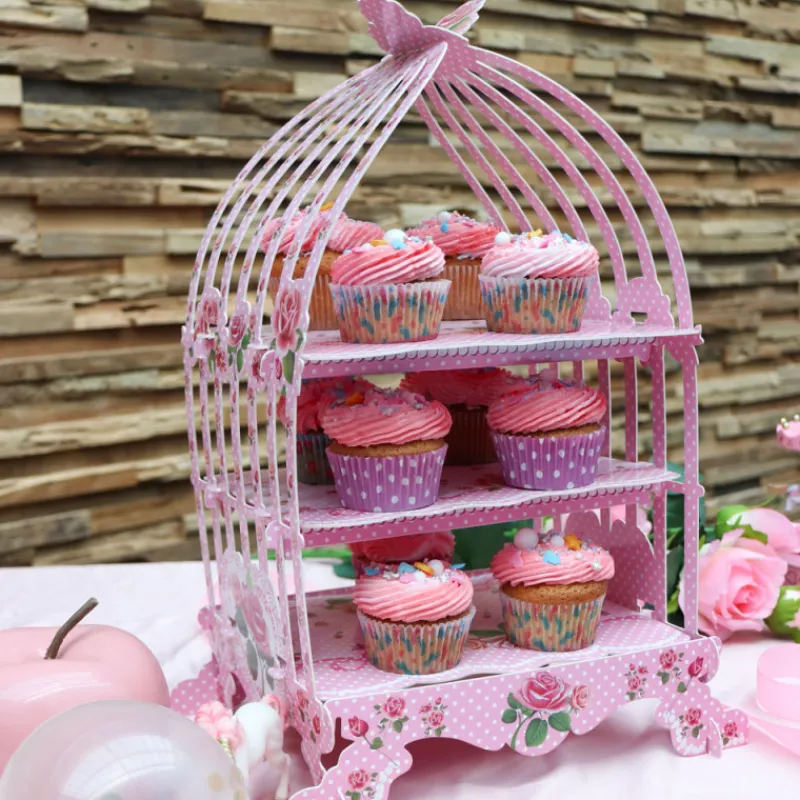Ce magnifique présentoir à 3 étages cage à oiseaux peut présenter jusque 24 mini cupcakes Ø 3 cm.