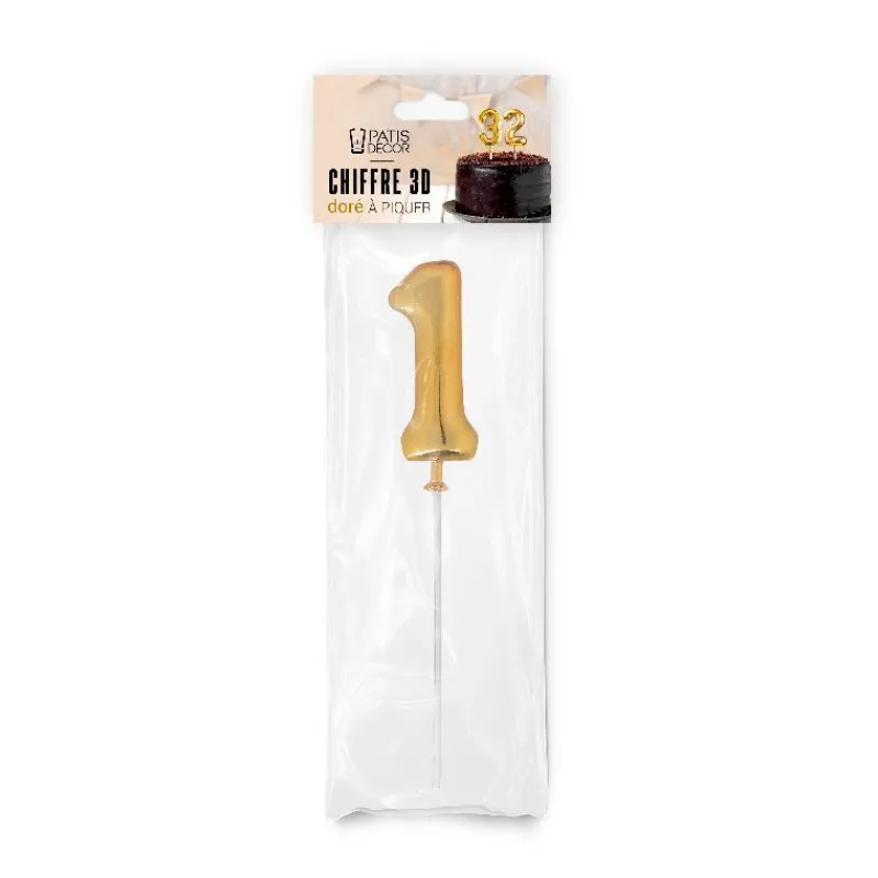 Chiffre n°1 en 3D sur pique, à positionner sur vos gâteaux d’anniversaire : idéal pour obtenir une décoration chic et originale.