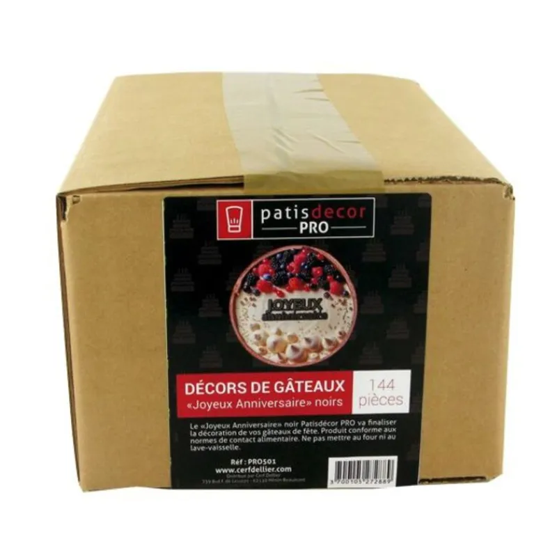 Lot de 5 décors en plastique noirs inscription Joyeux Anniversaire à poser sur les gâteaux d’anniversaire.
