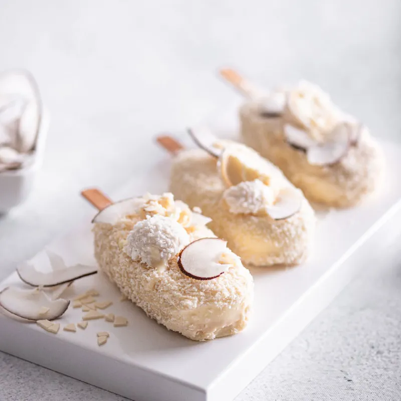 Prêt à l’emploi, l’enrobage croquant à la noix de coco Patisdécor sera parfait pour obtenir une finition façon « rocher » de vos entremets familiaux tout comme individuels. Son bon goût de noix de coco ravira les papilles de vos convives et les morceaux d’amandes et de biscuits qu’il contient, donneront de la texture en bouche ainsi qu’encore plus de gourmandise ! Idéal pour vos glaces, entremets, petits gâteaux…