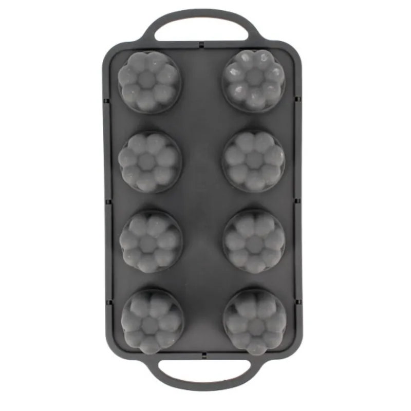 Ce moule fleur en silicone platinium sera parfait pour la réalisation de délicieux cannelés. Équipé de 8 empreintes de 5 cm de diamètre, ce moule dispose d’une armature rigide intégrée et de poignées pour offrir une stabilité dans la prise en main.