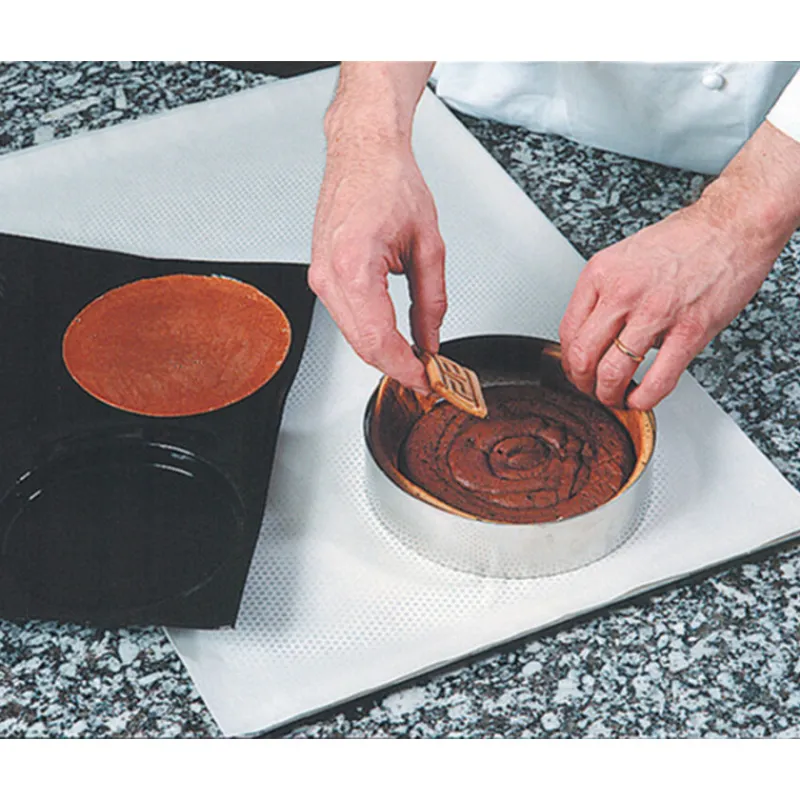 Tapis de cuisson en silicone utilisable pour la cuisson de biscuit en relief pour le chemisage des entremets et petits gâteaux, le coulage de sucre cuit, nougat, pâtes de fruits, la réalisation de décors à base de pastillage,la cuisson de pâte salée, sucrée, feuilletée, en relief