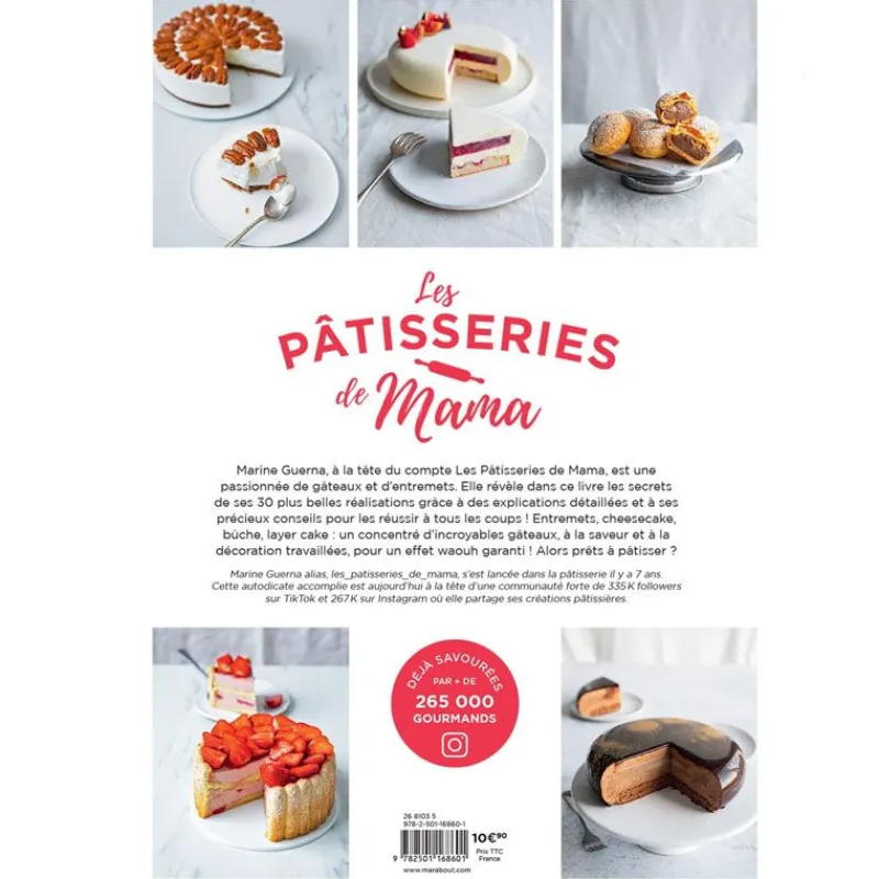 Jeune maman de 3 enfants, Marine Guerna, alias @Les_pâtisseries_de_la_mama, a commencé à pâtisser il y a 7 ans. Autodidacte accomplie, elle partage sur les réseaux ses recettes créatives pour toutes les occasions : repas de famille, anniversaires, goûters des enfants…Tartes, entremets, pièces montées, bûches, cookies, cakes… Marine nous invite dans sa cuisine et nous prend par la main pour nous aider à réaliser des pâtisseries dignes d’un chef !