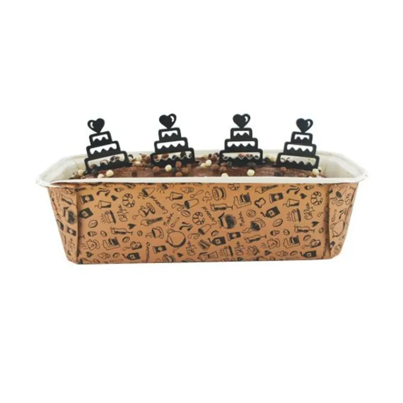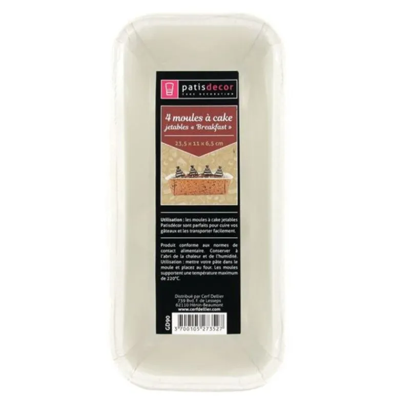 Ces moules à cakes en carton jetables Patisdécor vous permettent à la fois de cuire vos cakes, de les transporter, mais également de les présenter, grâce à leur superbe décor « breakfast » couleur café.