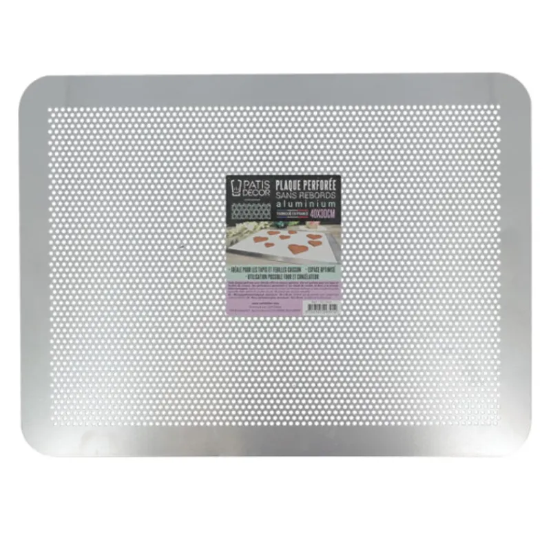 La plaque en aluminium perforée est également le support idéal pour vos toiles pâtissières silicone et tapis de cuisson en silicone, si utiles pour vos macarons, tuiles, etc.