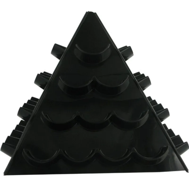 Petite pyramide à macarons élégante de couleur noire, composée de 4 faces à assembler. Elle est ainsi démontable et facilement transportable. De plus, les 4 plaques peuvent être emboîtées, ce qui facilite le rangement et permet le gain de place.