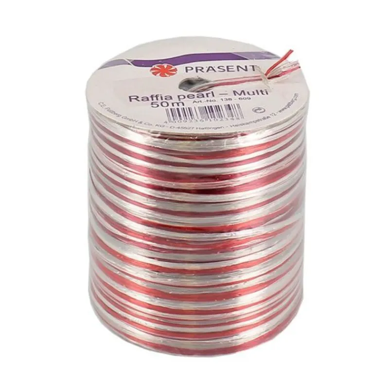 Bolduc Raphia Pearl rouge / argent 50 m