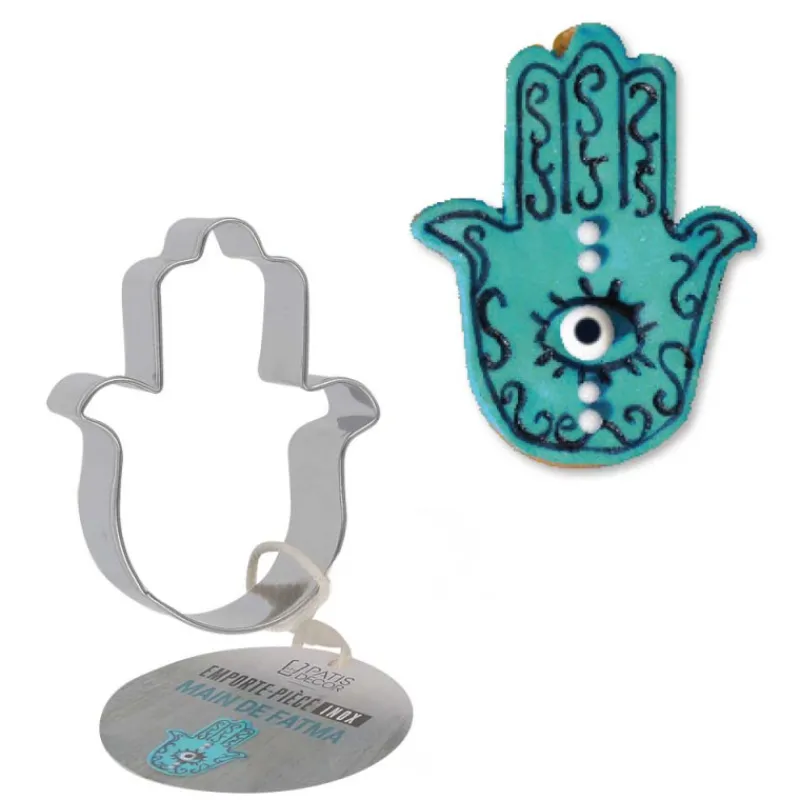 Avec cet emporte-pièce en forme de main de Fatma, il est facile de réaliser des biscuits, des sablés, mais aussi des décorations en pâte à sucre, pâte d’amande ou encore gumpaste.