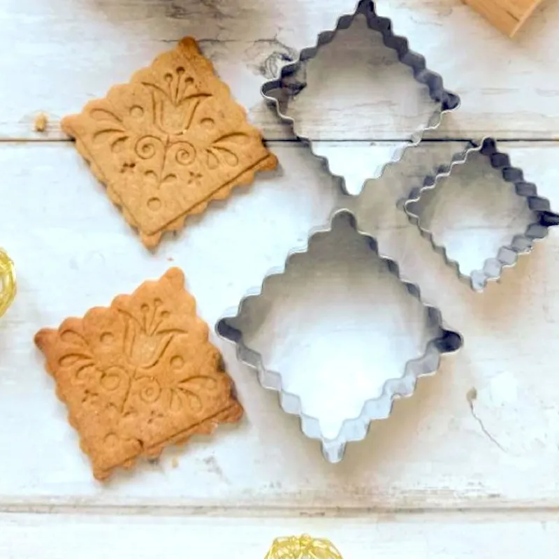 Emporte-pièces carrés Petit Biscuit en inox parfaits pour découper votre pâte à biscuit, pâte d’amande ou pâte à sucre.
