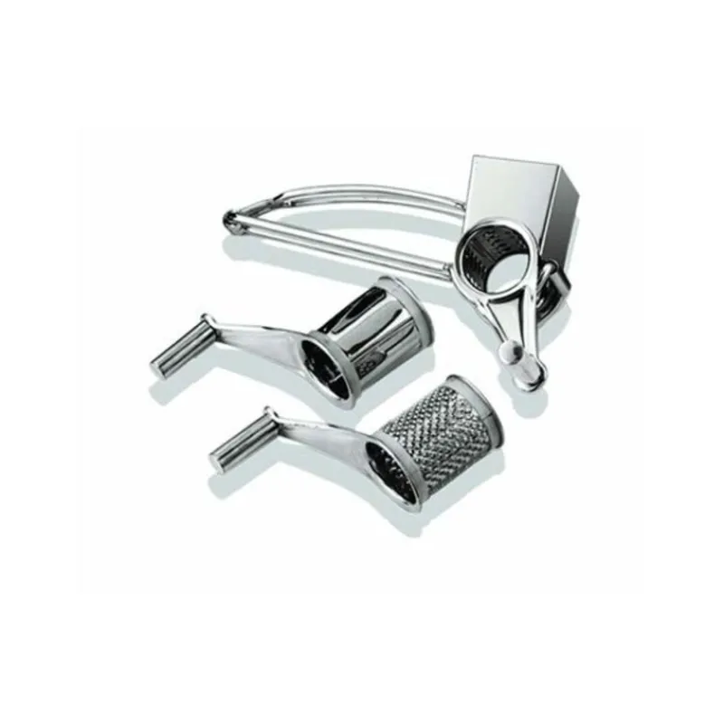 Elle est équipée d’un moulin tout inox muni de 3 tambours : un tmabour pour gruyère pour râper les fromages à pâte dure, un tambour crudités pour les fruits et légumes et un tambour rondelle pour obtenir de jolis copeaux.