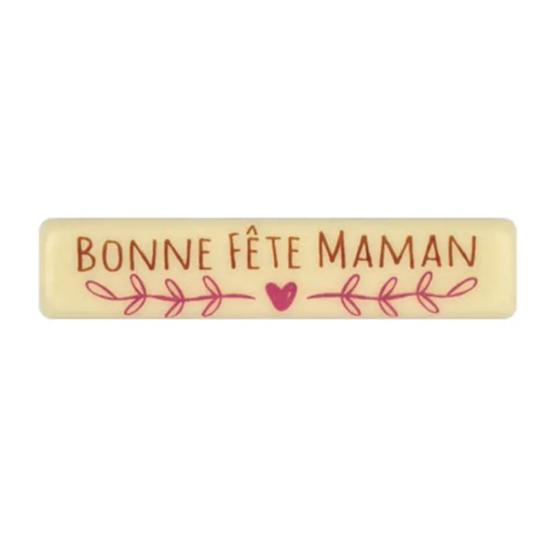 Boîte de 66 décors en chocolat blanc Bonne Fête Maman, parfaits pour la décoration de vos gâteaux et cupcakes de fête des mères.