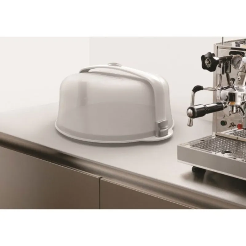 Boîte à gâteau rigide avec finition chromée et poignée et serrures de sécurité. Elle est idéale pour conserver, servir et transporter des gâteaux jusqu’à 28 cm (possible jusqu’à 30 cm, mais le gâteau arrivera au bord du plateau), des biscuits, des pizzas et des collations.