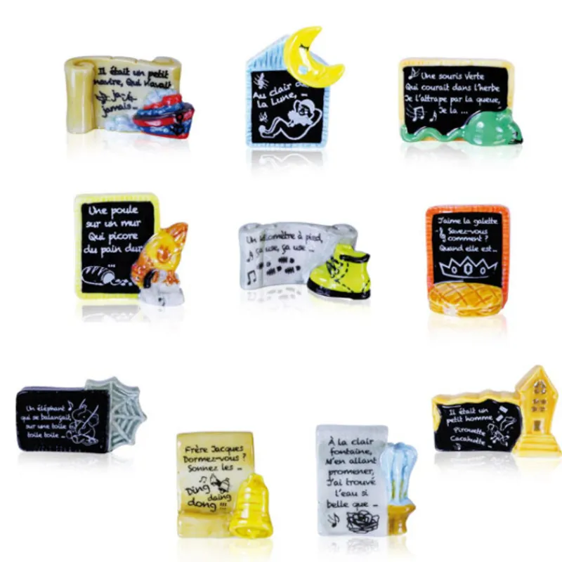 Pour une galette traditionnelle à la frangipane, une préparation pour frangipane et nos fèves Comptines de mon enfance assorties en porcelaine seront parfaites. Elles représentent quelques passages des plus célèbres comptines de notre enfance : Frère Jacques, Au Clair de la Lune, Pirouette Cacahuète, Une Souris Verte, etc.