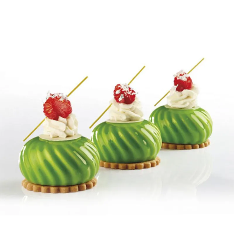 Moule en silicone Caleidon pour la réalisation de superbes desserts à la forme originale, qui se distingue pour son effet kaléidoscopique et vibrant.