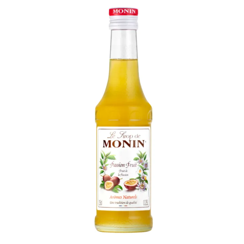 Ingrédients : Sucre, eau, jus concentré de citron, jus concentré de fruit de la passion, jus concentré d’orange, arôme naturel, colorant : E161b, émulsifiants : gomme d’acacia, E445. Jus de fruits : 36 %, dont 10 % de jus de fruit de la passion.