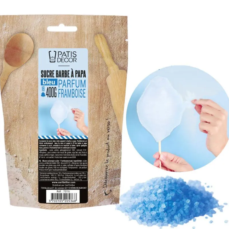 Invitez l’esprit joyeux de la fête foraine dans votre maison grâce à ce sucre pour barbe à papa. Vous pourrez préparer en quelques minutes de délicieuses barbes à papa bleues parfum framboise.