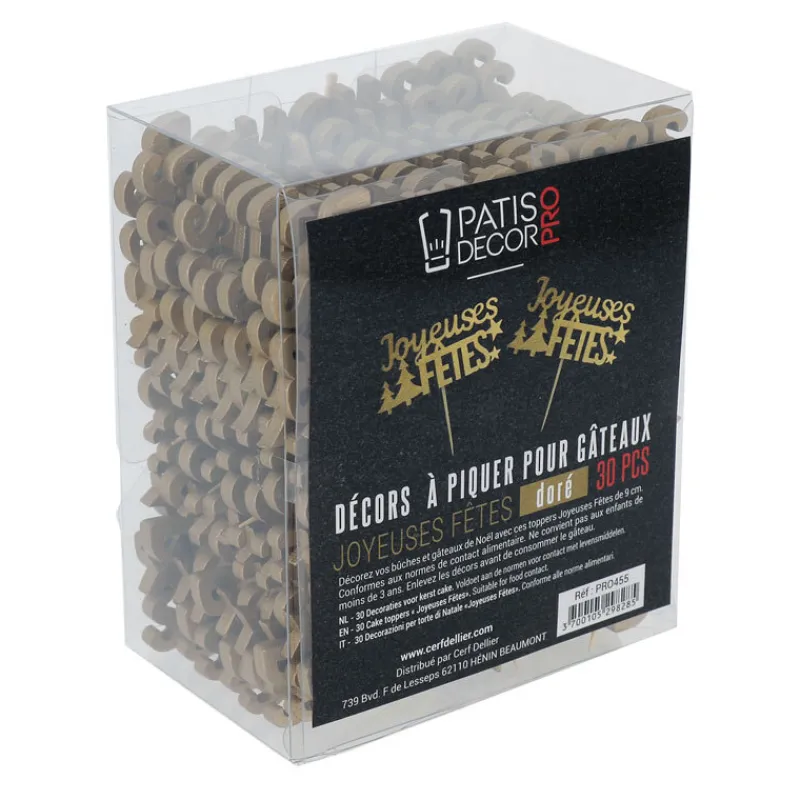 Ces décors sur pique « Joyeuses Fêtes » dorés sont la touche finale parfaite pour votre décoration de fête de fin d’année. Fabriqués en bois et peints avec des couleurs vives, ces décors ajoutent une touche festive à tous vos desserts et compositions florales.