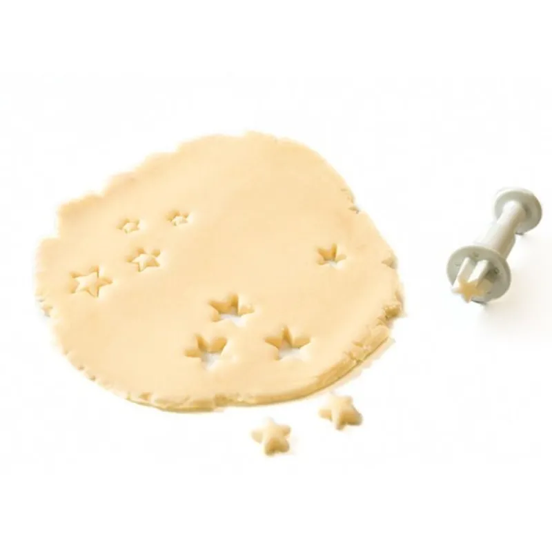 Grâce à cet ensemble de 3 découpoirs éjecteurs, vous pourrez découper de toutes petites étoiles en pâte à sucre ou pâte d’amande pour la décoration de vos gâteaux et desserts.