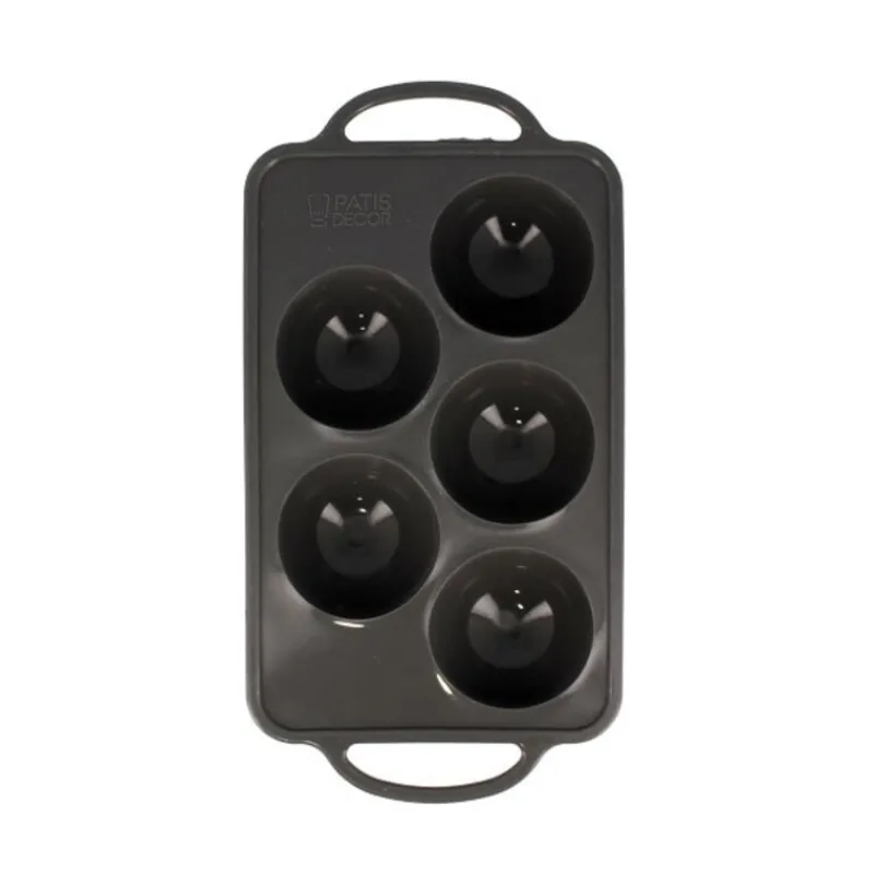 Moule en silicone professionnel pour la réalisation de demi-sphères de 8 cm de diamètre. Ce moule en silicone en forme de dôme vous permettra de réaliser 5 pâtisseries individuelles.