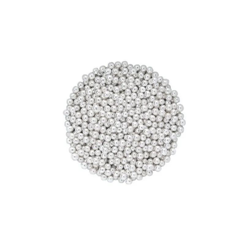 Pour la décoration des gâteaux, des desserts, des cupcakes, des coupes glacées. Ces perles argentées sont également utilisées mélangées à des dragées pour les baptêmes, les mariages et les communions.