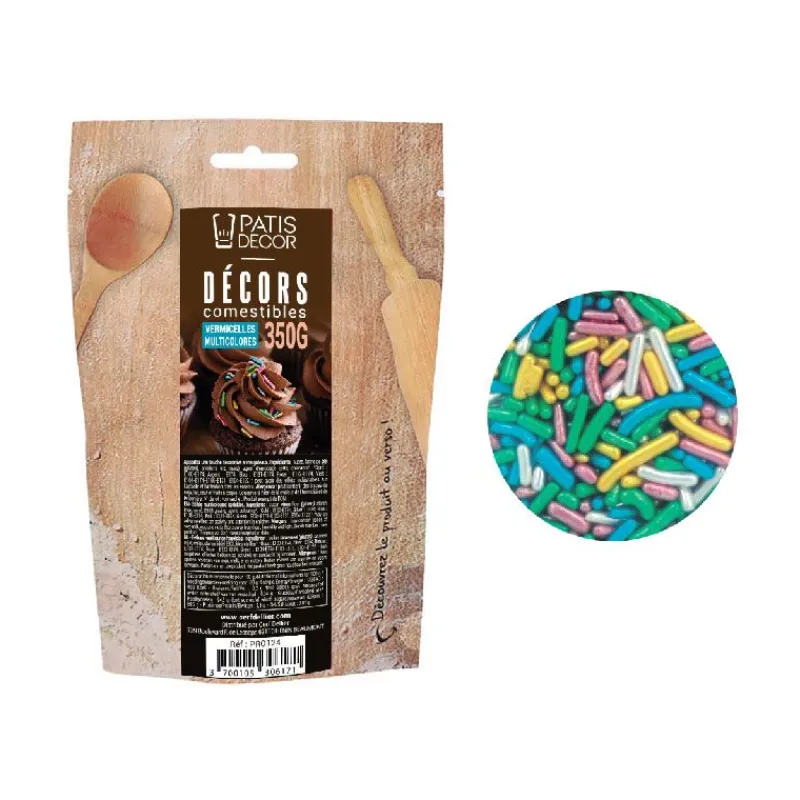 Avec les vermicelles multicolores Patisdécor 350 g, vous pourrez embellir vos cupcakes, muffins, cake pops, gâteaux.