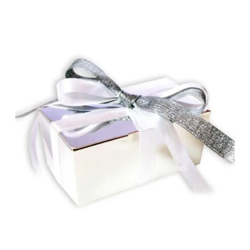 Ballotin extérieur argent brillant intérieur blanc en carton ingraissable pour l’emballage décor de vos chocolats, bonbons, fruits déguisés, etc…