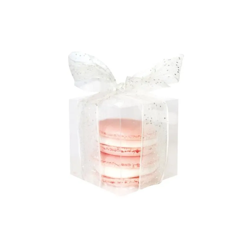 Ces boîtes en forme de cubes transparentes en polypro sont parfaites pour de nombreuses occasions : anniversaire, baptême, communion… Elles peuvent contenir des dragées, de petites friandises…