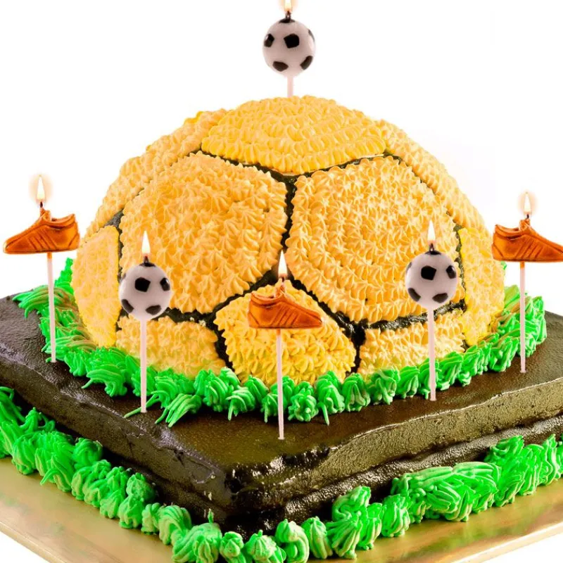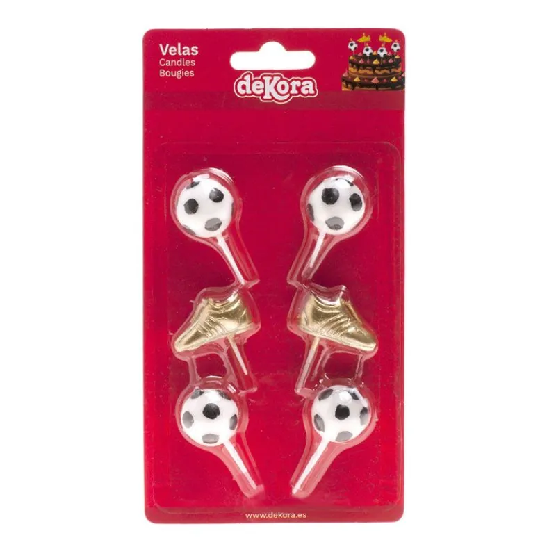 Cet ensemble de 6 bougies thème football (2 chaussures + 4 ballons) seront parfaites pour un gâteau football.