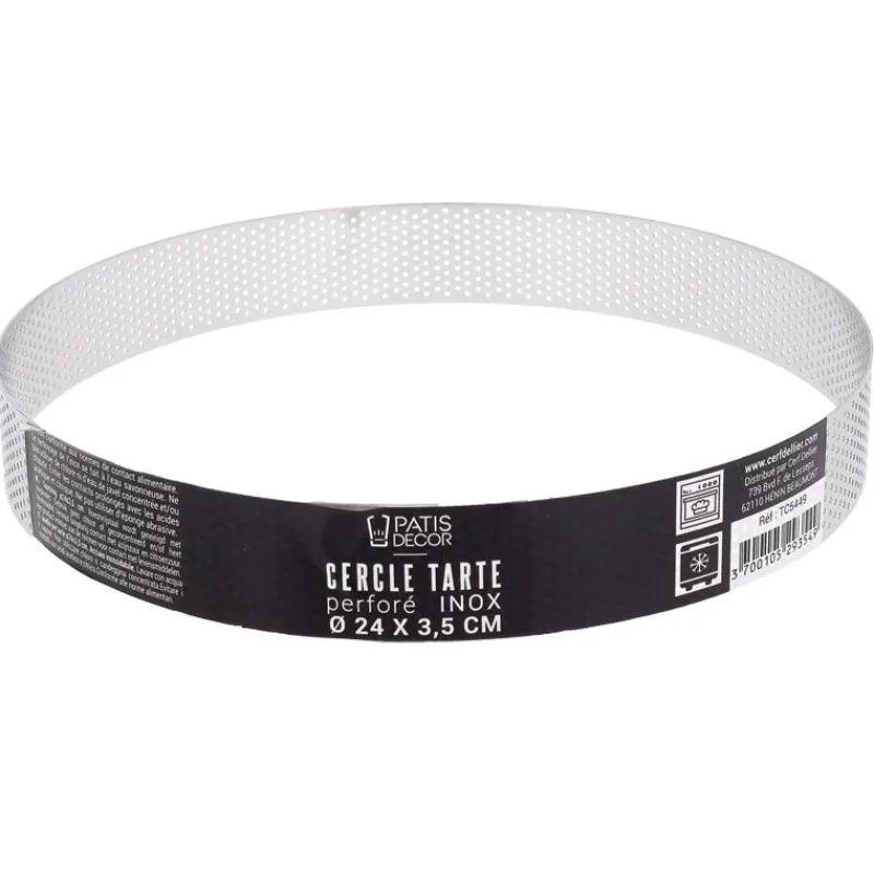 C’est pourquoi le cercle à tarte perforé en inox Ø 24 cm Hauteur 3,5 cm Patisdécor est parfait pour résoudre ce problème et vous permettre de réaliser des tartes dignes des plus grands chefs pâtissiers.