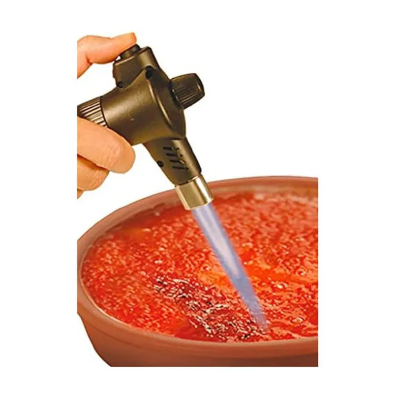 Si vous souhaitez réaliser une crème brûlée, ce chalumeau à sucre est parfait : il est adapté à cet usage, ainsi qu’à tous les travaux de collage du sucre.