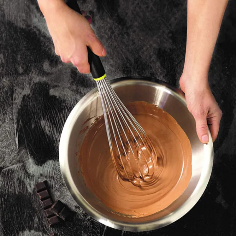 Le fouet est un accessoire indispensable permettant de mélanger un appareil tout en évitant la formation de grumeaux. De plus, il incorpore de l’air dans les préparations telles que les blancs d’œufs.