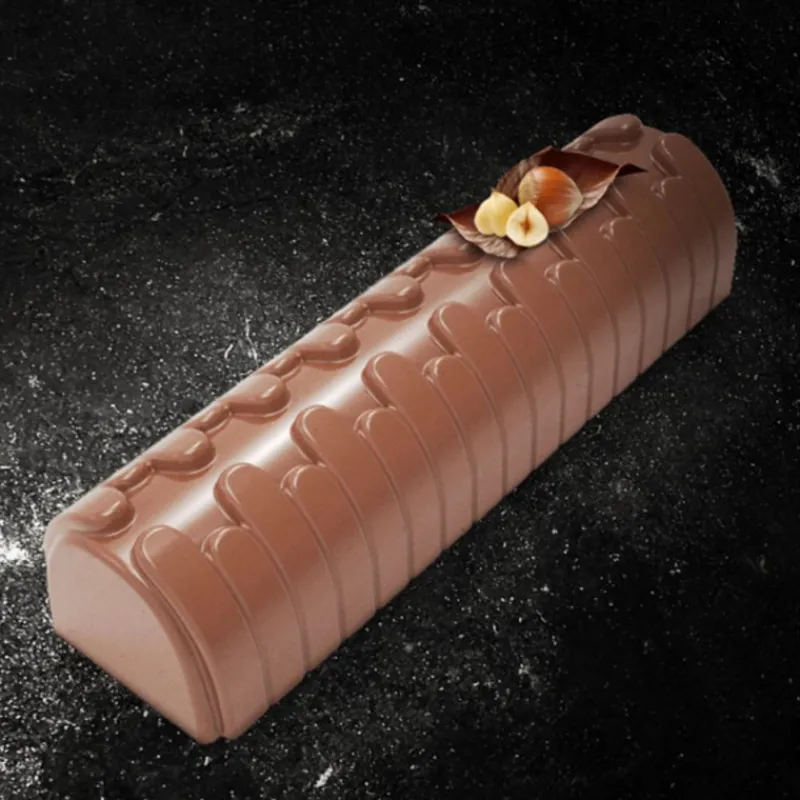 Grâce à ce moule à bûche courte Nazaré, vous pourrez réaliser des glaces et des bûches glacées que vous pourrez ensuite décorer d’un glaçage miroir, de décors de bûche comestibles et des traditionnels décors de bûches non comestibles.