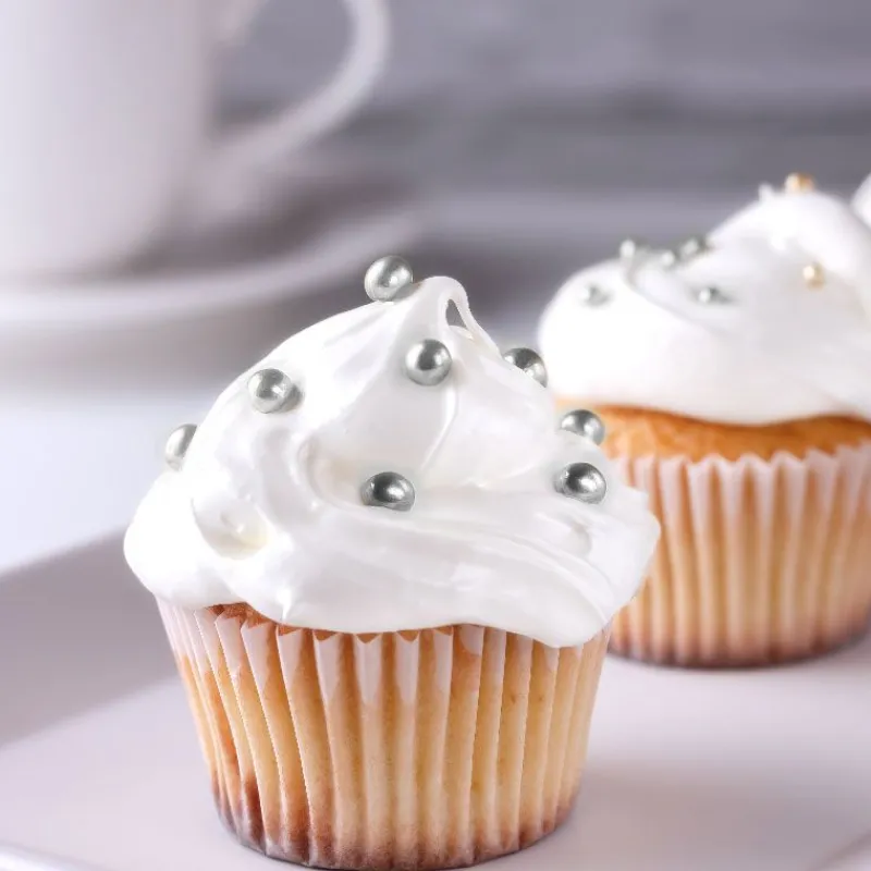 Laissez parler votre créativité grâce à ces perles comestibles argentées à parsemer sur vos desserts, cupcakes, cake pops et autres pâtisseries.