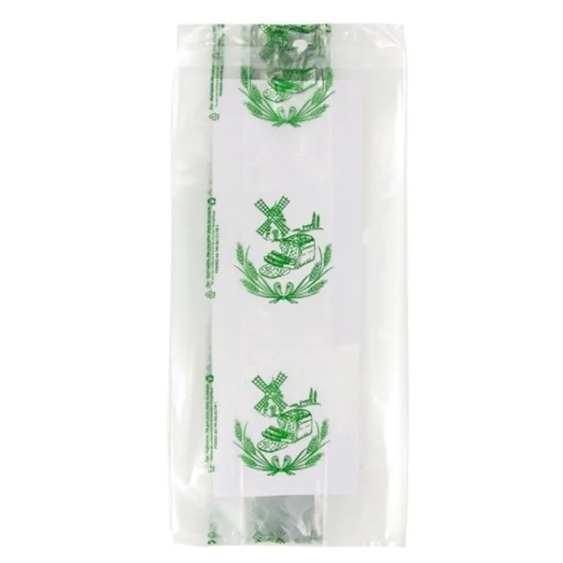 Sacs à pain transparents en polypropylène impression verte, parfaits pour les boulangers qui vendent leur pain.