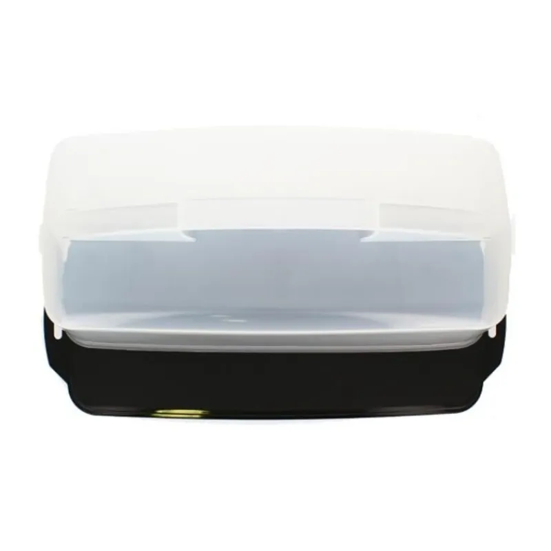 Boîte à gâteaux rectangulaire de transport 43 cm, pour conserver, servir et transporter vos gâteaux, tartes ou entremets. Le couvercle se clipse à l’aide de fermeture sur les côtés et une poignée, sur le dessus, permet de transporter facilement vos gâteaux.